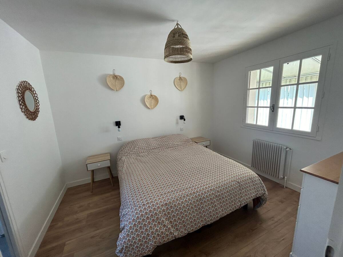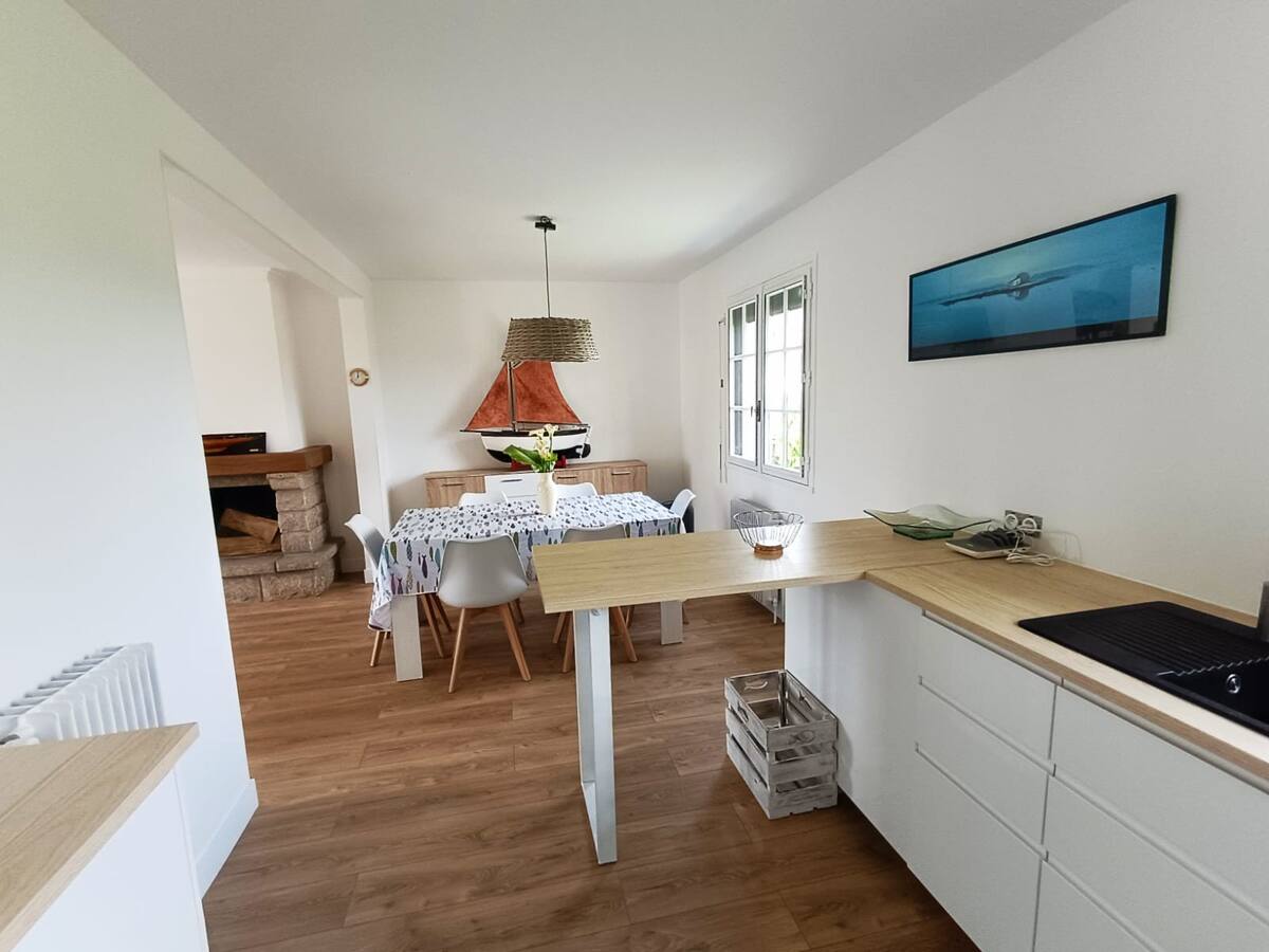 Maison situé a proximité immédiate du centre bourg et de son joli port, elle comprend 4 jolies chambres avec literie neuve une cuisine ouverte entièrement équipée, un jardin arboré pour y préparer et partager de délicieux repas, barbecue et profiter du calme.Stationnement dans l enceinte de la propriété ou a proximité,départ de sentiers balisés accessible a 200m. Les plages de sable blanc etc….le linge de maison n est pas fourni, vous avez la possibilité de le louer via la conciergerie.